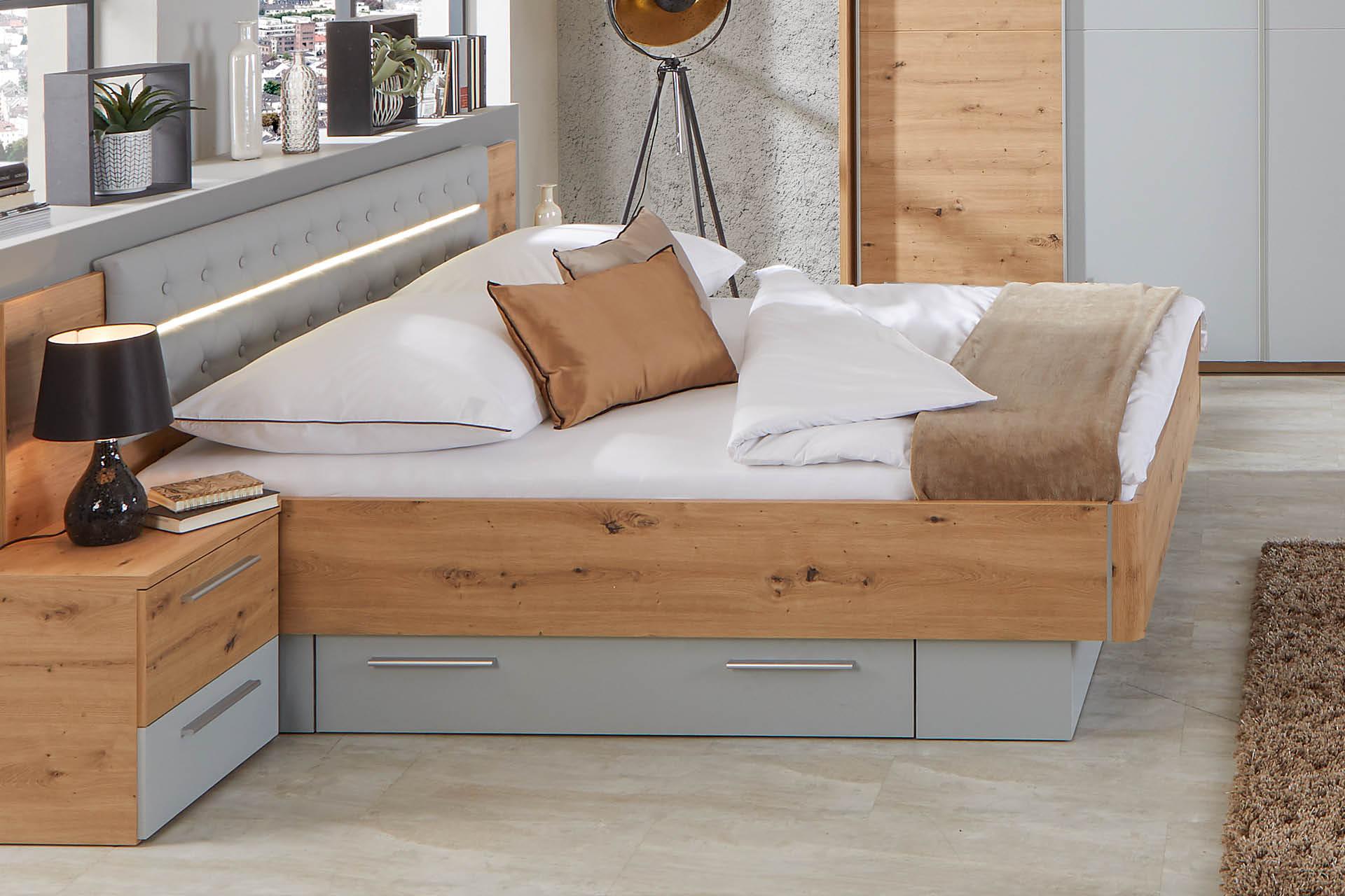 Ágykeret Mars 140/200 Cm - grafitszürke/tölgyfa színű, Konventionell, faalapú anyag (140/200cm) - MID.YOU