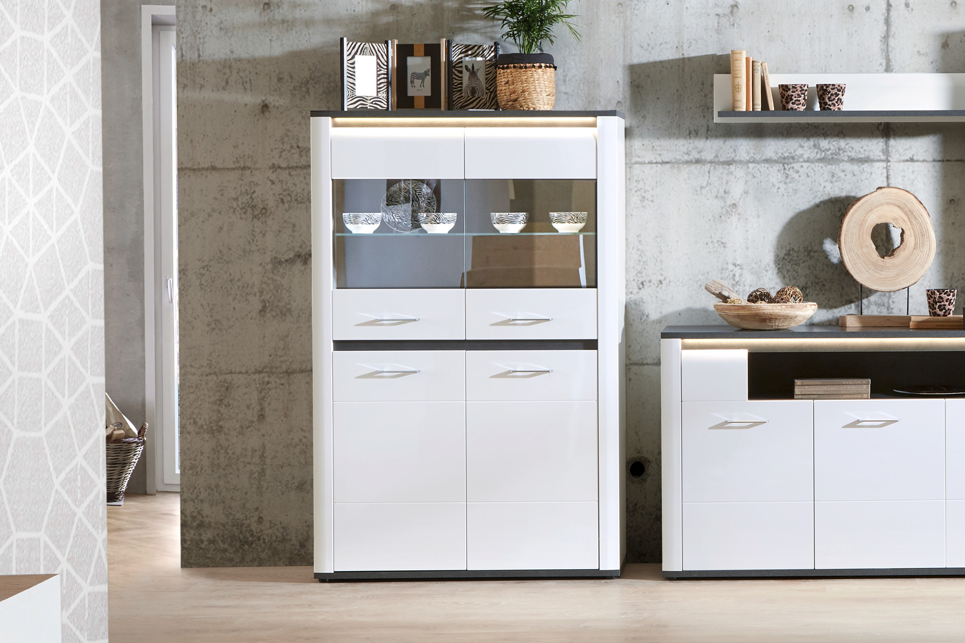 A beépített LED világítás gondoskodik a meleg, hangulatos fényekről, amelyekkel kiemelhet egy-egy tárgyat. Az